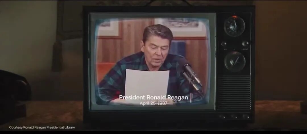 我仔细看了一遍这则广告,不长,就一分钟,画面是美国的普通人,旁白是里根的画外音,最后,过渡到老式电视机里里根在讲话的画面。